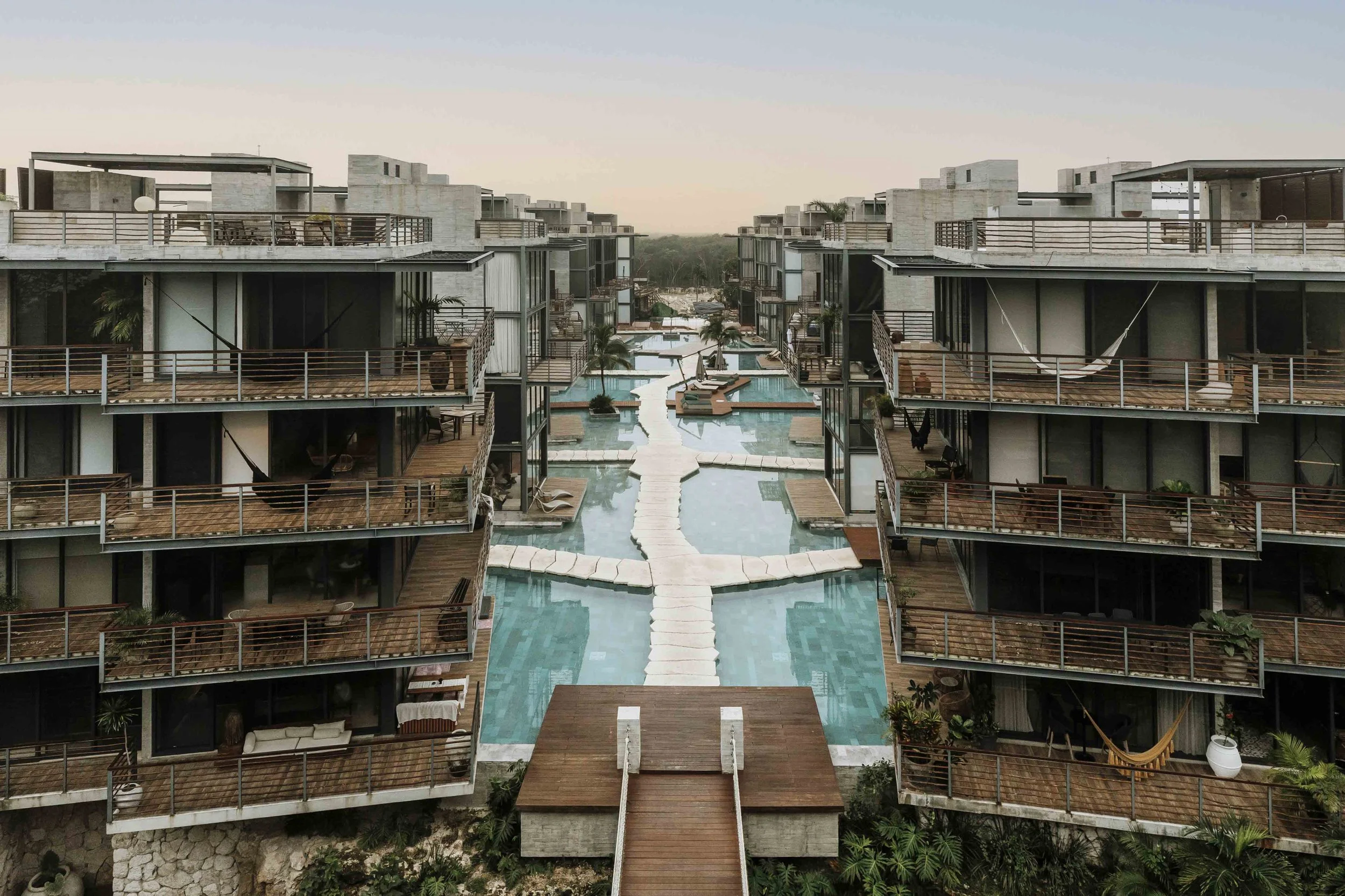 Xalet offers an exceptional collection of amenities that elevate everyday life, including a common swimming pool, a cenote-inspired feature, gym, game room, welcoming lobby, elevator, and on-site parking. Its strategic location on Av. Cobá allows for quick access to downtown, the beach road, and the main highways, making mobility throughout Tulum effortless.
